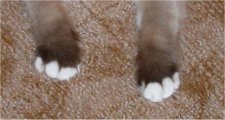 Polštářky chodidel má Birma nejčastěji růžové, někdy s příměsí barvy odznaků a mezi jednotlivými prstíky chlupaté.